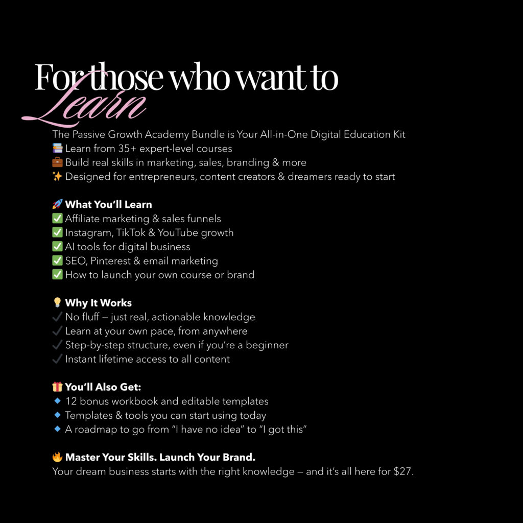 This all-in-one Digital Business Starter Kit includes everything you need to learn, grow, and earn online — even if you’re starting from scratch.